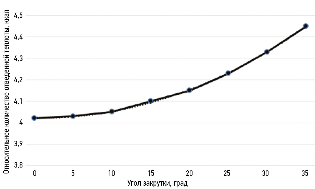 - существует оптимальное значение угла закрутки и степени овальности, при которых достигается максимальное значение количества отводимой тепловой энергии.