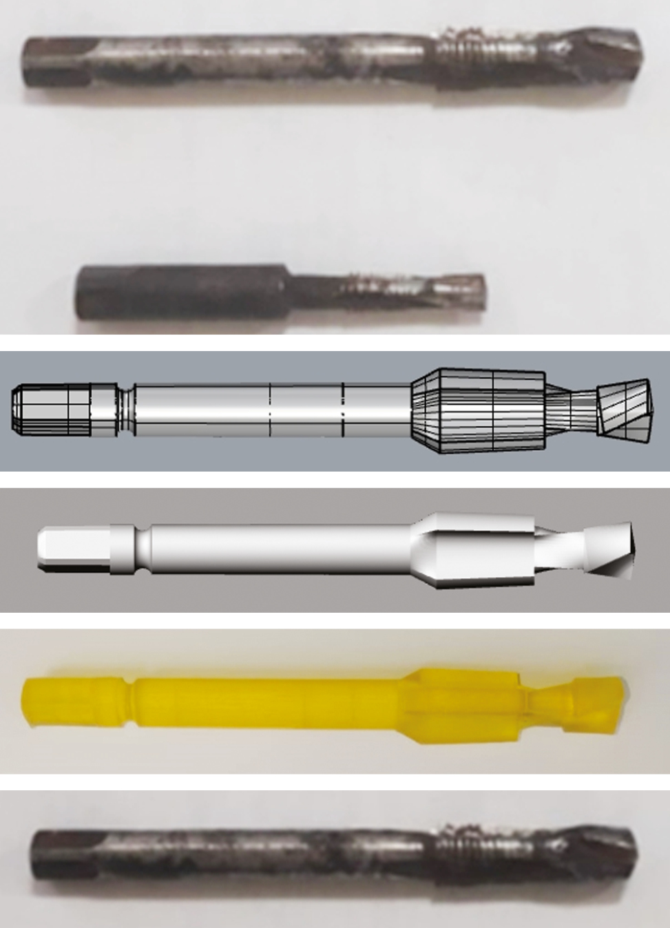 В дальнейшем по итогам смоделированного зенкер-метчика в 3D-программе был создан необходимый программный код для его прототипирования, конечным результатом которого стала напечатанная модель (рис. 5) [4, 6, 7, 9].