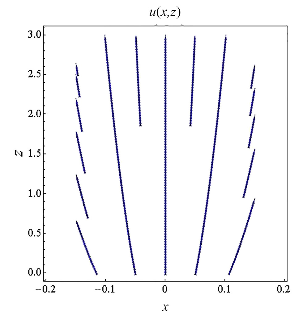Будем считать, что трубочка представляет собой диффузор, т.е. . В этом случае поток движется вдоль оси z () и линии тока расходятся от нее ().
