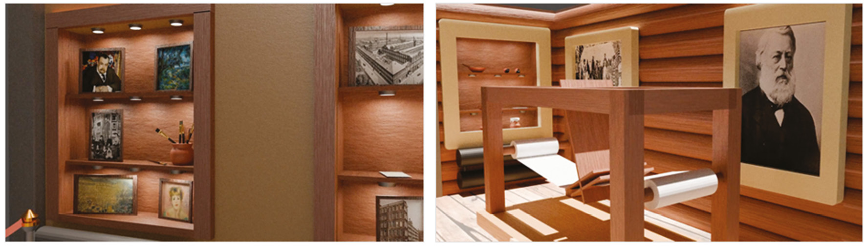 Проектный этап: создание дизайн-концепции планировочного решения музея и художественного оформления его интерьера с использованием архитектурных, колористических, декоративно-пластических и светотехнических средств; реализация эскизного проекта экспозиции зала с учетом современных отделочных технологий и материалов; разработка макета; виртуализация макета.
